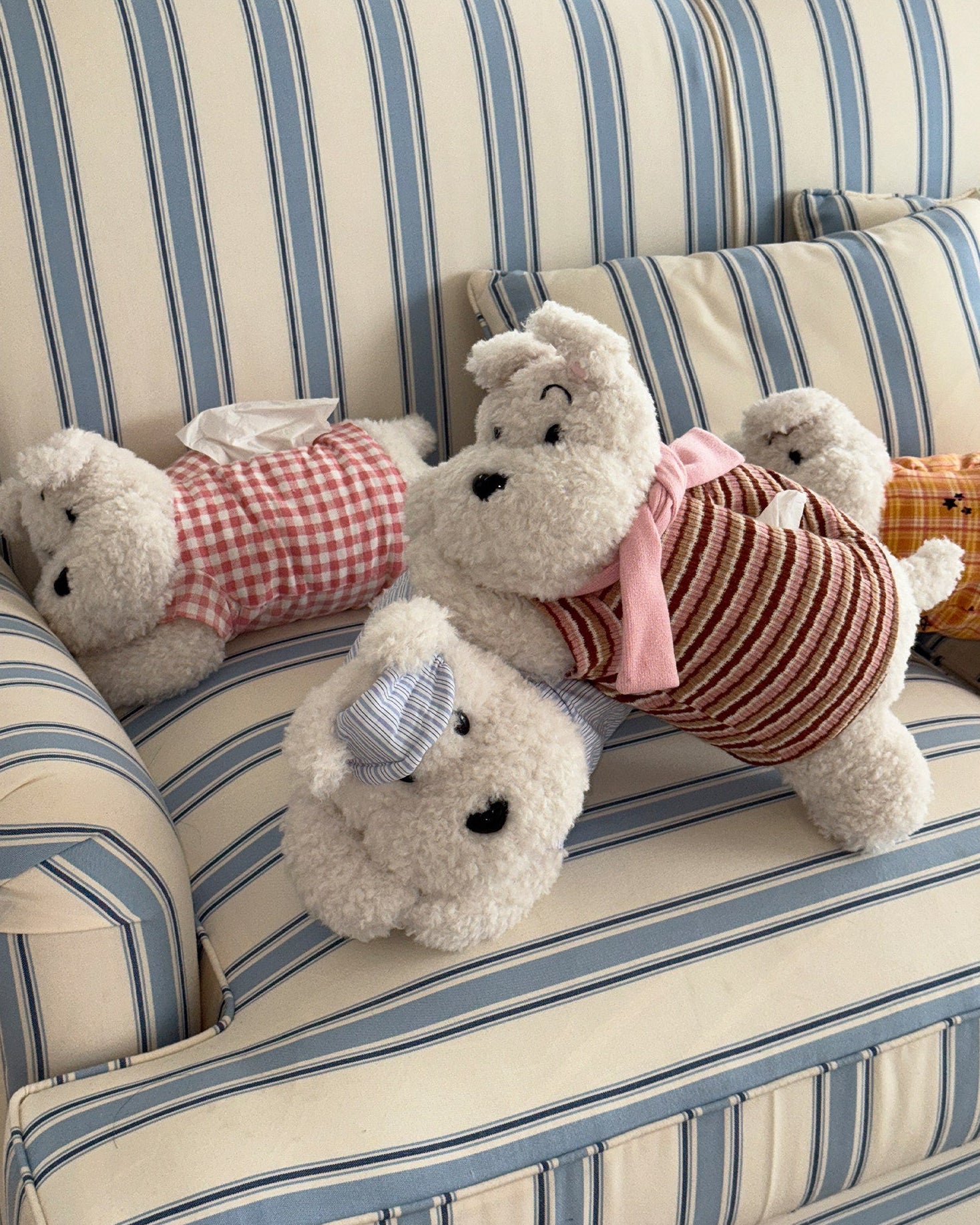 This adorable dog-shaped tissue box cover adds a playful and cozy touch to any space. Designed with soft plush fabric and charming puppy details, it transforms a simple tissue box into a delightful decorative piece.