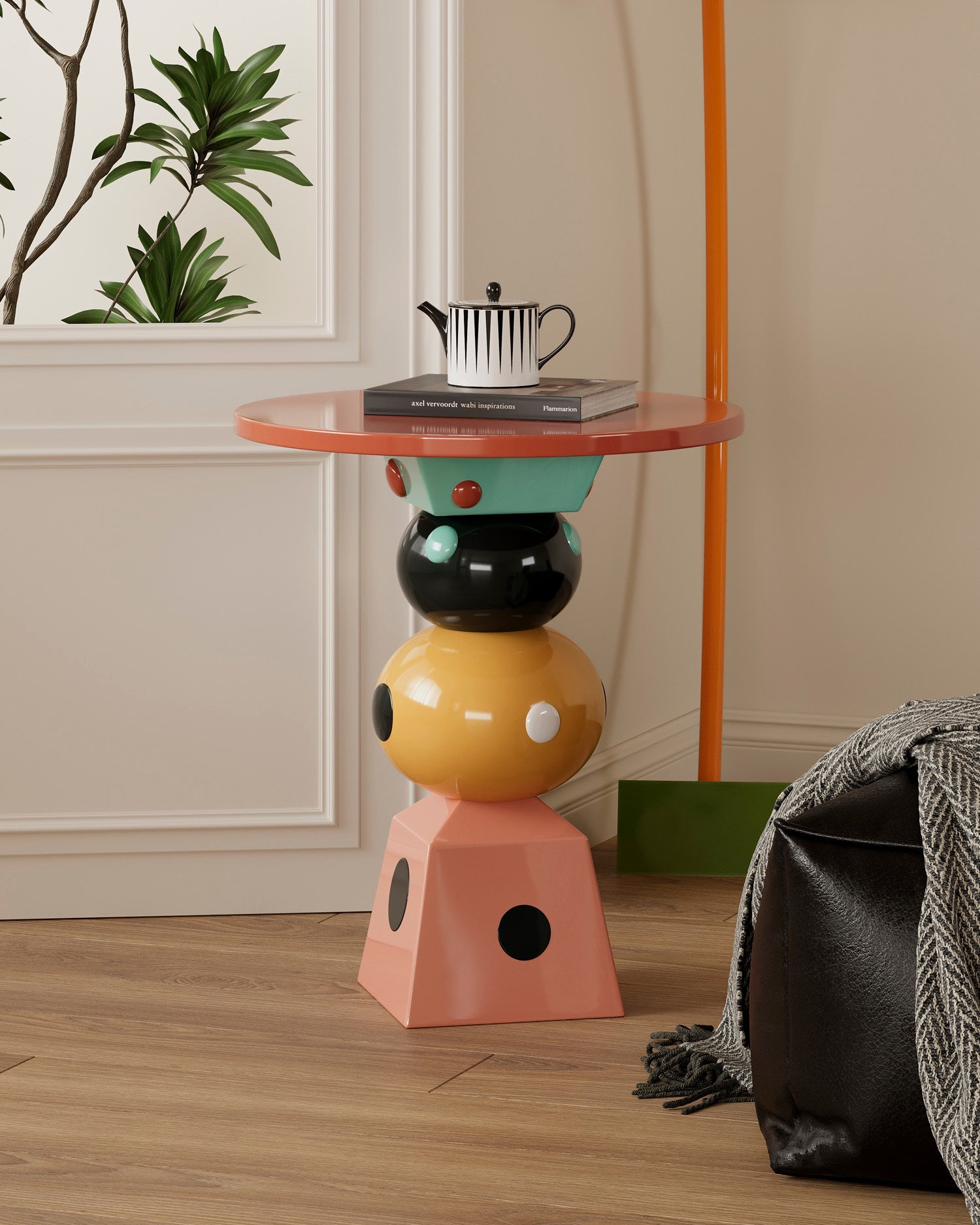 Make a bold statement with this dotted geometric side table that doubles as a conversation starter. With a sculptural silhouette featuring stacked spheres and pyramid-like base, this small table blends artistic whimsy with functional design. Made from durable resin, it offers a smooth, glossy finish and vibrant color blocking—perfect for dopamine-style interiors and eclectic homes.