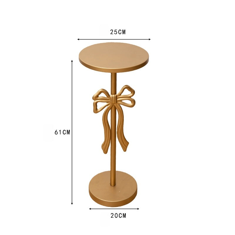 Infuse your space with a touch of vintage elegance using our Gold Bow Side Table. Crafted with a metallic bow detail on a sleek iron frame, this petite round table brings charm and style to any corner. Whether placed next to a cozy armchair or used in a café or bedroom, it serves as a statement piece perfect for afternoon tea or casual reading.
