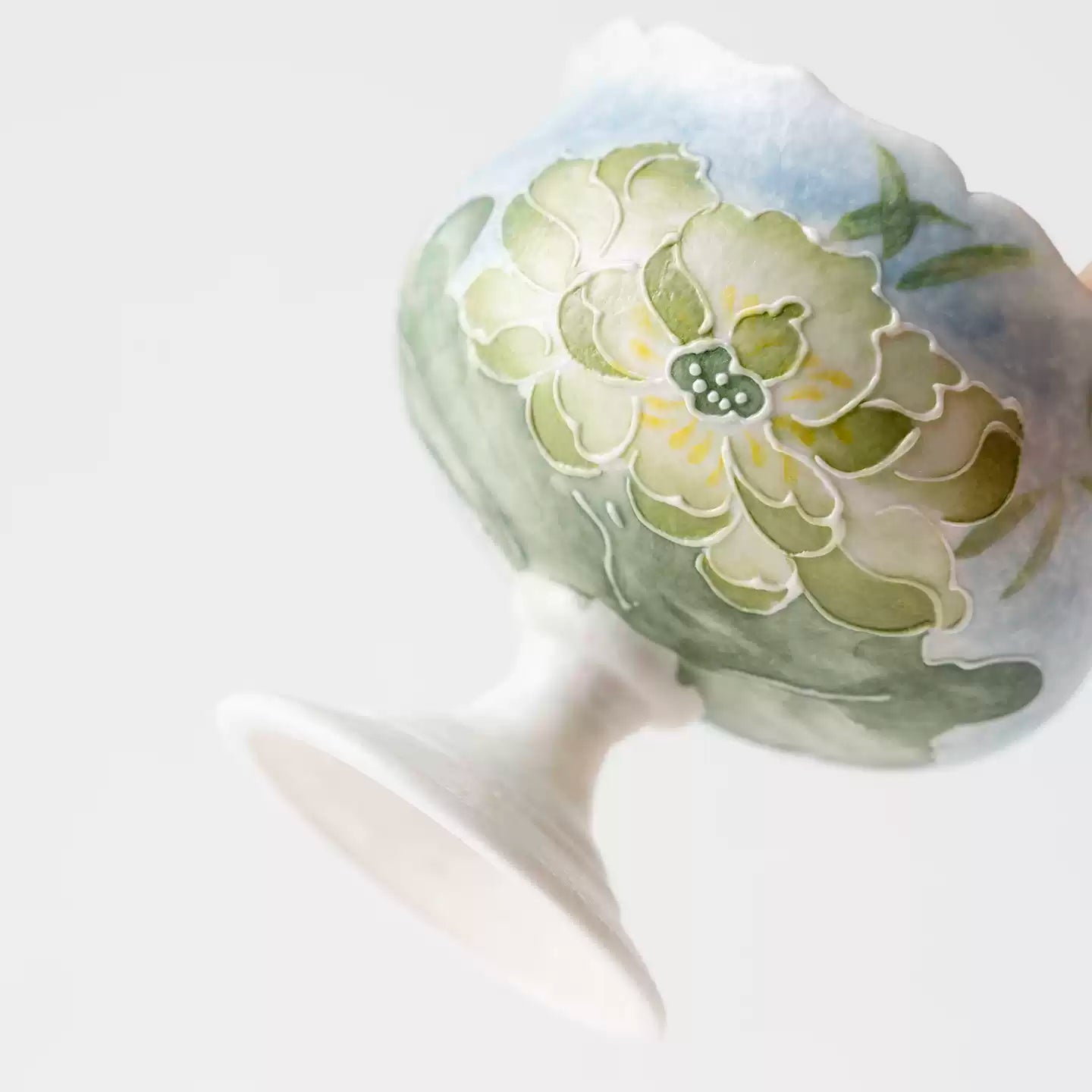 A celebration of timeless craftsmanship and elegant artistry, this hand-painted underglaze ceramic cup set features a serene lotus motif in soothing green, blue, and ivory tones. Each cup is delicately shaped with a petal-like rim, offering a poetic aesthetic that enhances your daily tea or coffee ritual. Available in two exquisite formats – a single 220ml coffee cup with lotus-shaped saucer, or a gift-ready set of two 80ml tea cups with elegant stems – this collection is perfect for personal indulgence or meaningful gifting.