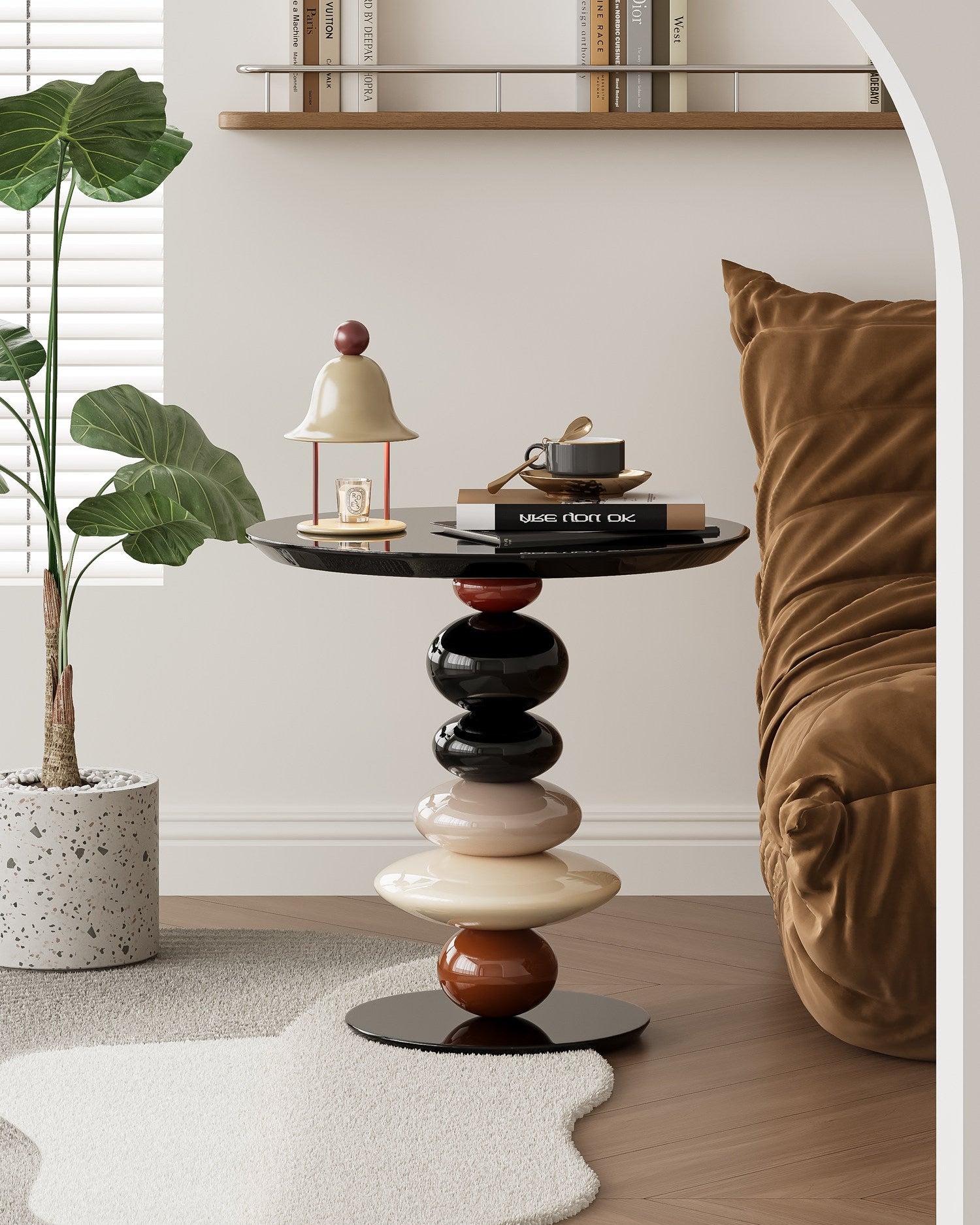 Inspired by smooth river stones, this modern pebble-shaped side table brings an artistic and sculptural touch to any space. Crafted from high-quality resin, its layered organic form creates visual depth while maintaining a clean, minimalist aesthetic.